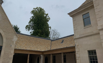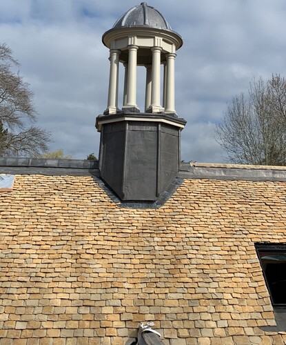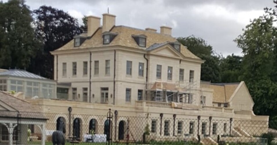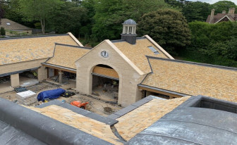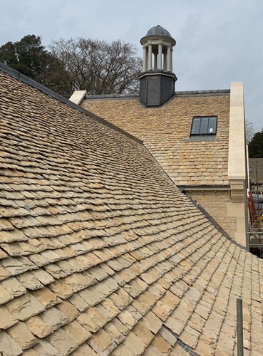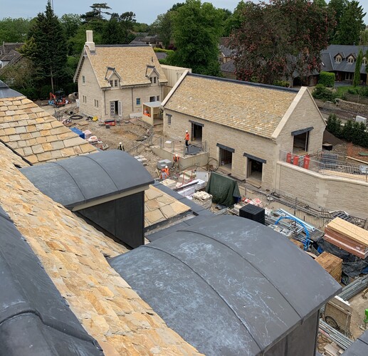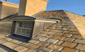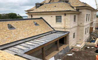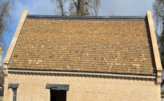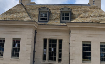 A new stone-built house with a Costwold Stone Slate Roof.